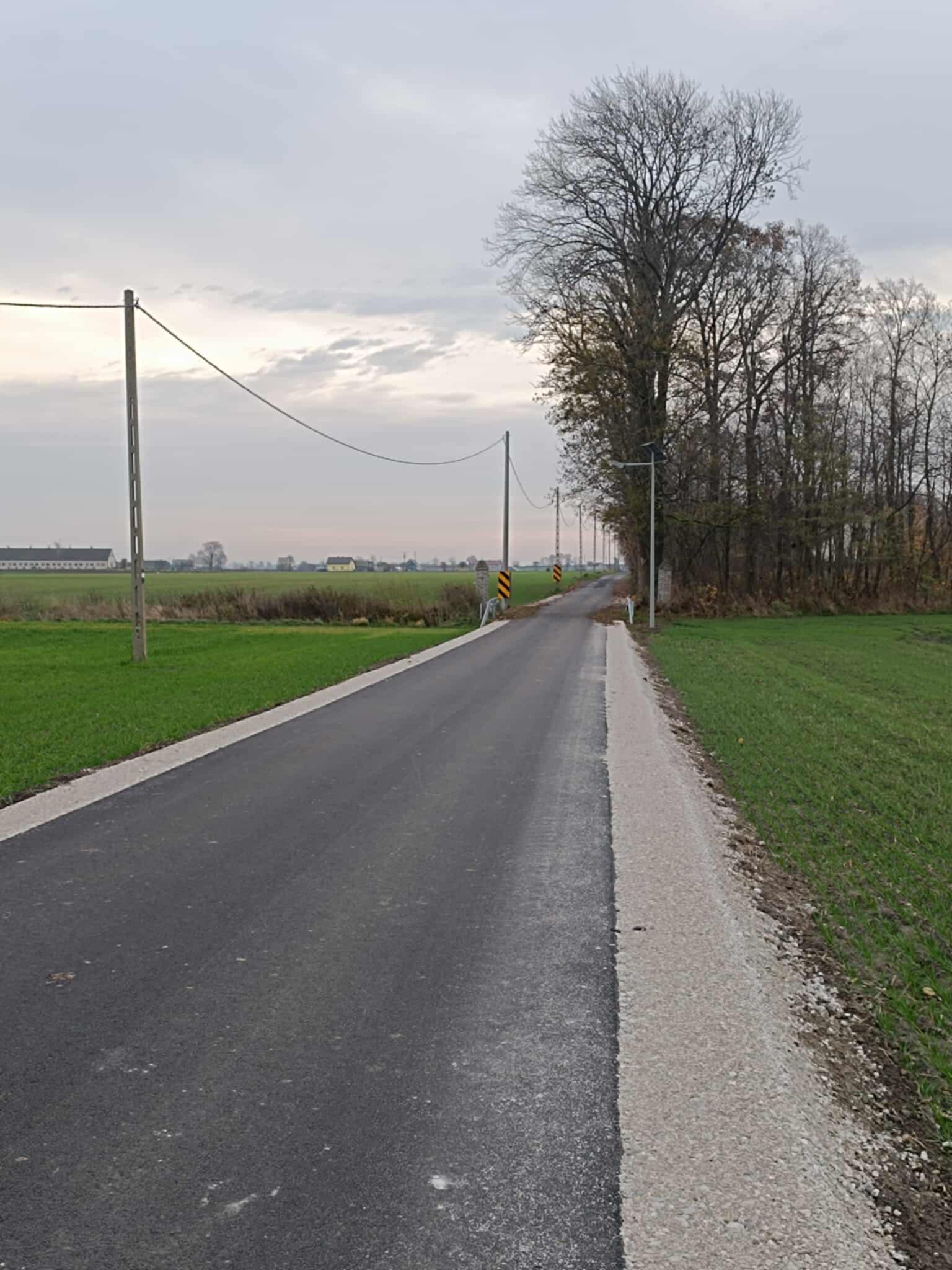 W ramach realizowanego zadania na istniejącej podbudowie drogi została położona nawierzchnia bitumiczna dwuwarstwowo, składająca się z warstwy wiążącej ścieralnej o minimalnej łącznej grubości warstw 6 cm o długości 0,430 km.