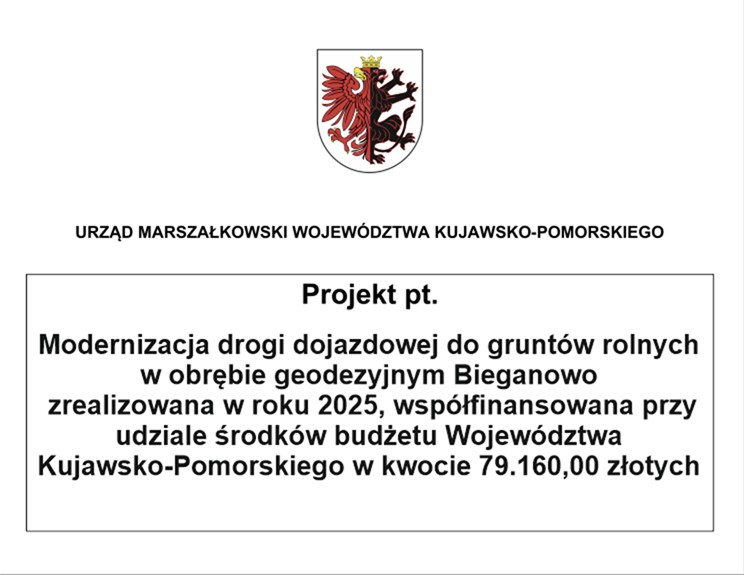 Zakończono inwestycję pn. „Przebudowa drogi gminnej nr 180437 C Kolonia Dobre II – Bieganowo” współfinansowaną przy udziale środków z budżetu Województwa Kujawsko - Pomorskiego w ramach Funduszu Ochrony Gruntów Rolnych w kwocie 79.160.00 zł i wkładu Gminy Radziejów w wysokości 178.712,56 zł. Całkowita wartość umowy z wykonawcą: 257.872,56 zł.