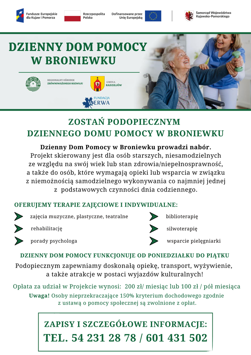 Rozpoczynamy rekrutację uczestników do Dziennego Domu Pomocy w Broniewku.