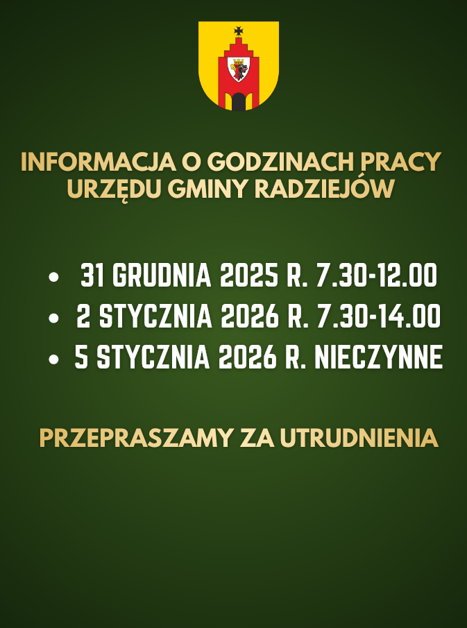 Godziny pracy Urzędu Gminy Radziejów - ważna informacja!